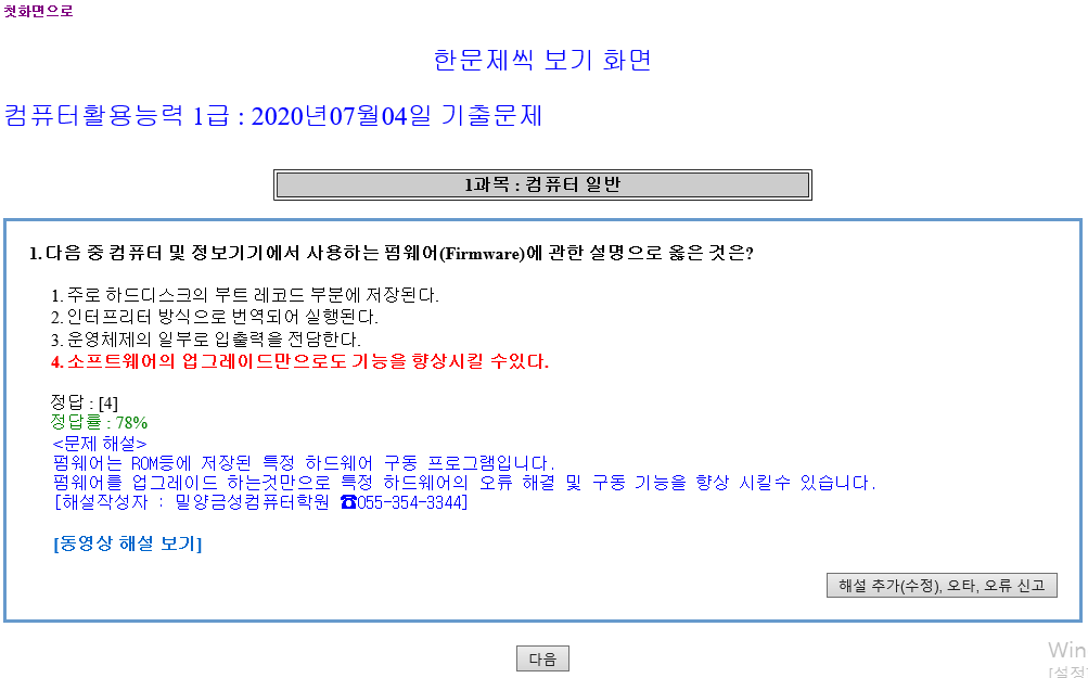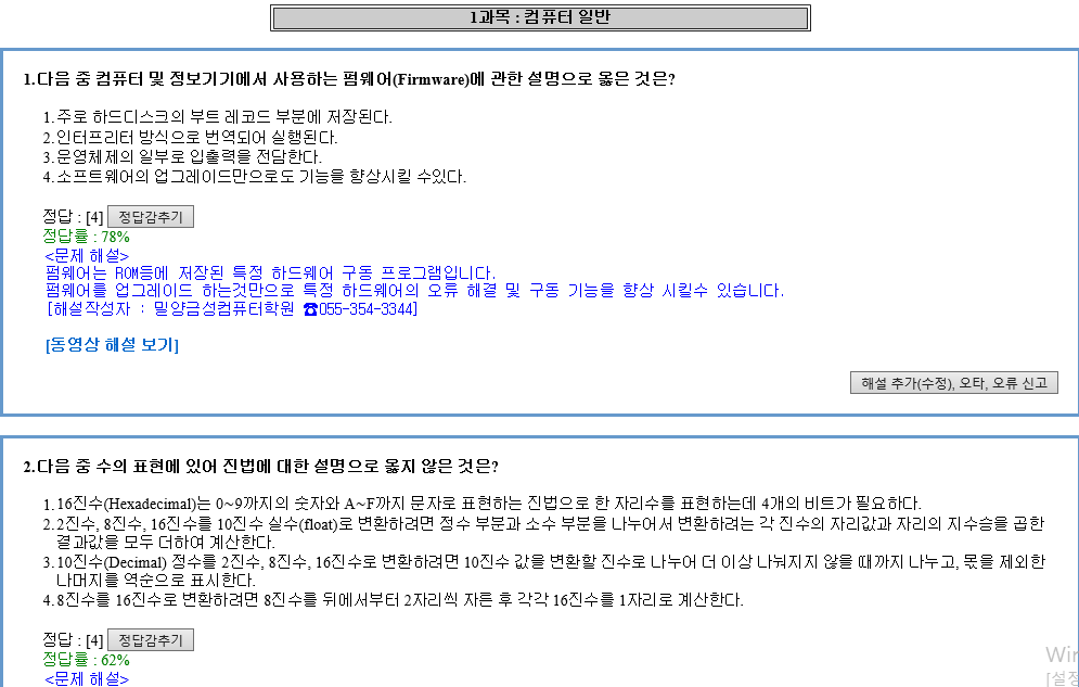 4. 문제에 대한 동영상 강의를 들을 수 있다(컴활 등 자격증 종류 한정임).