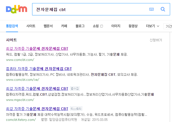 1. 네이버나 다음 포털사이트에서 “전자문제집 CBT”를 검색합니다.