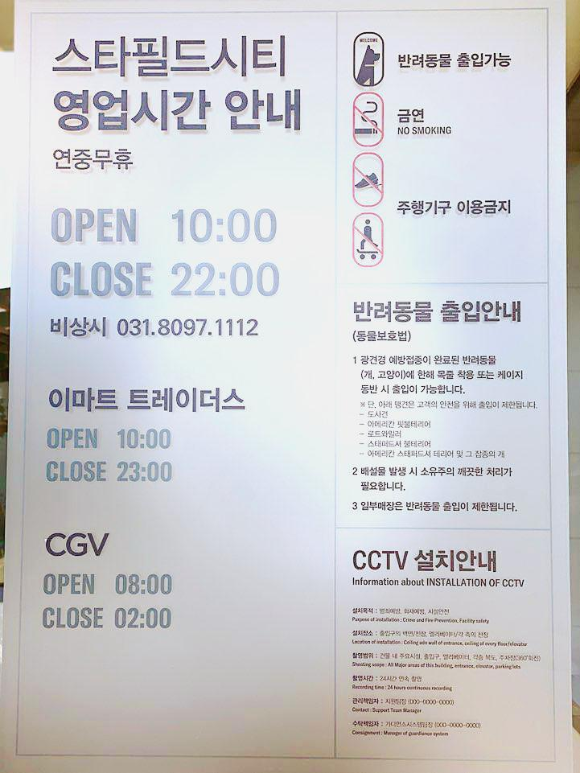 운영시간 : 10:00~22:00(CGV는 별도라고 합니다)