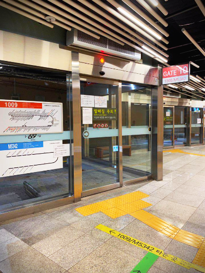 스크린 도어가 자동적으로 열립니다. 지하철 같기도 하고 신기하네요.