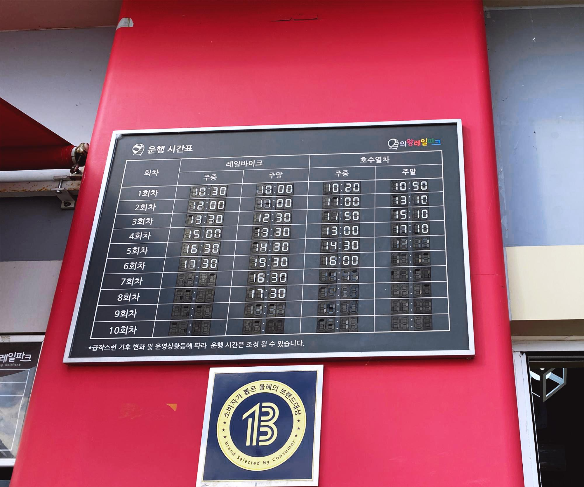레일바이크의 주중, 주말 시간대를 매표소에서 확인할 수 있습니다.
