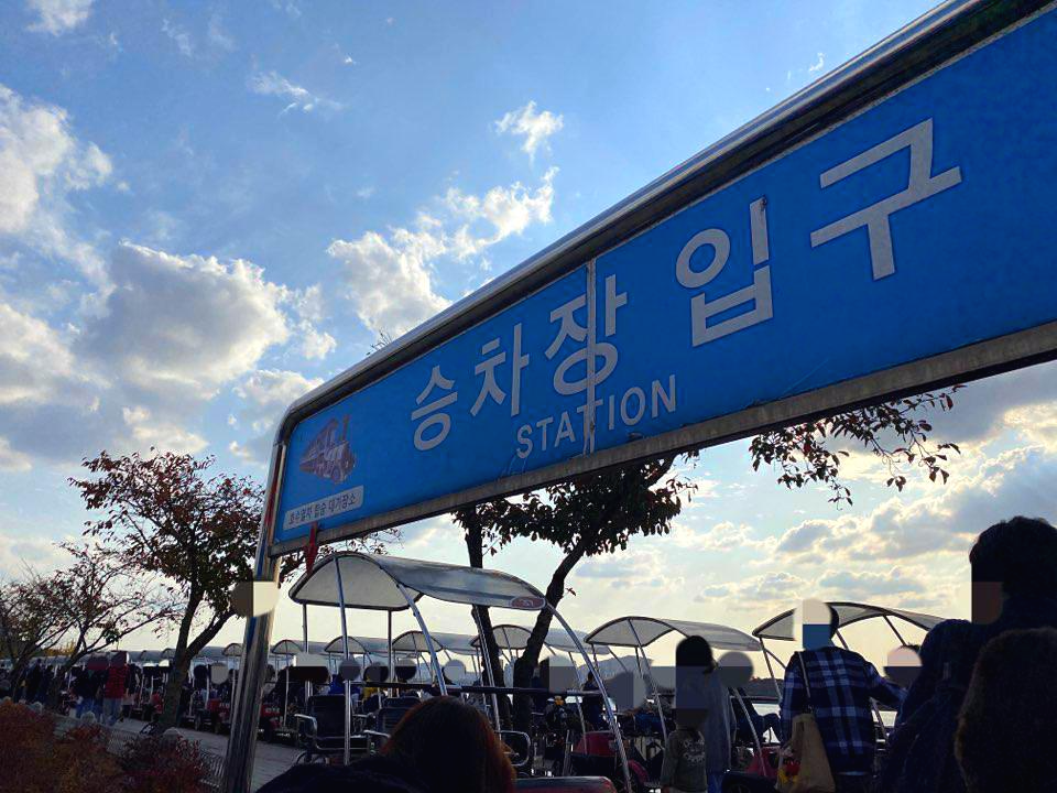 입장권 예매한 시간이 되면 승차장 입구에서 사람들과 함께 줄을 섭니다.