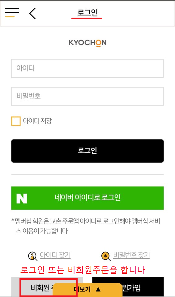 아이디가 있으신 분들은 아이디를 입력하셔도 되고요. 저는 아이디가 없이 비회원주문으로 하려고 합니다.