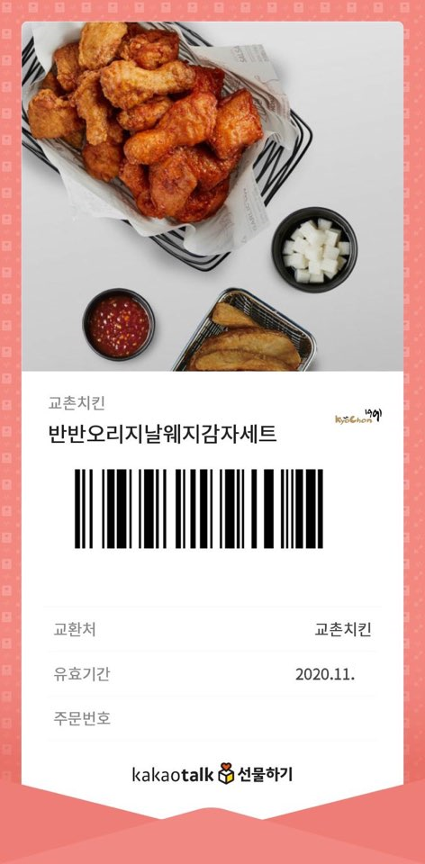 「카카오톡 기프티콘으로 교촌치킨 온라인 주문」