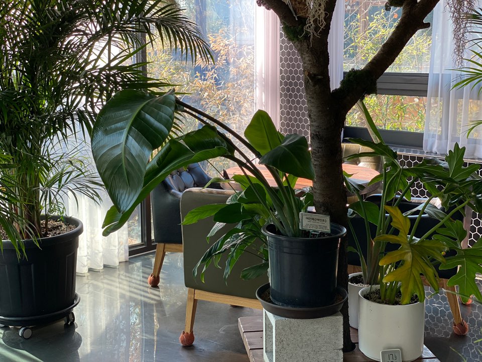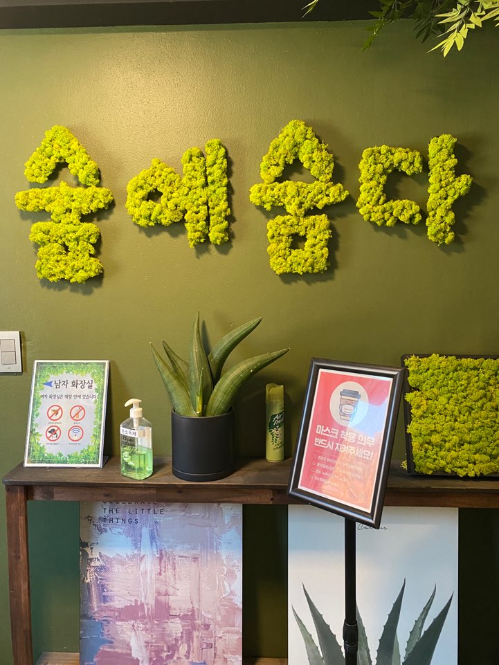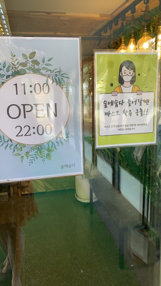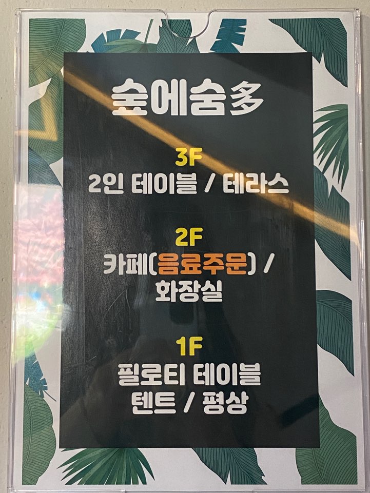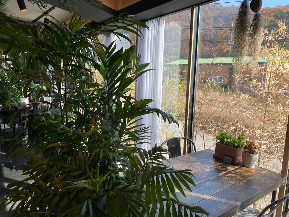 숲에숨다 카페 이름처럼 숲속에 있는 것 안락했답니다. 참고로 3층 실내에 있었는데 가습기(?) 같은 게 습도 때문에 틀어져 있었어요. 밖에 있을 때는 따사로운 햇빛이 있어서 좋았습니다.