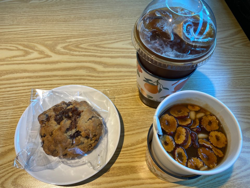 여기도 풀, 화분 등이 카페 안에 인테리어 되어있고 관리를 잘하시는지 풀들이 푸릇푸릇했어요. 걸죽한 대추고차, 아이스아메리카노, 르뱅쿠키 하나를 먹었고요. 쿠키도 매장에서 직접 구우시는 지 맛있었어요.