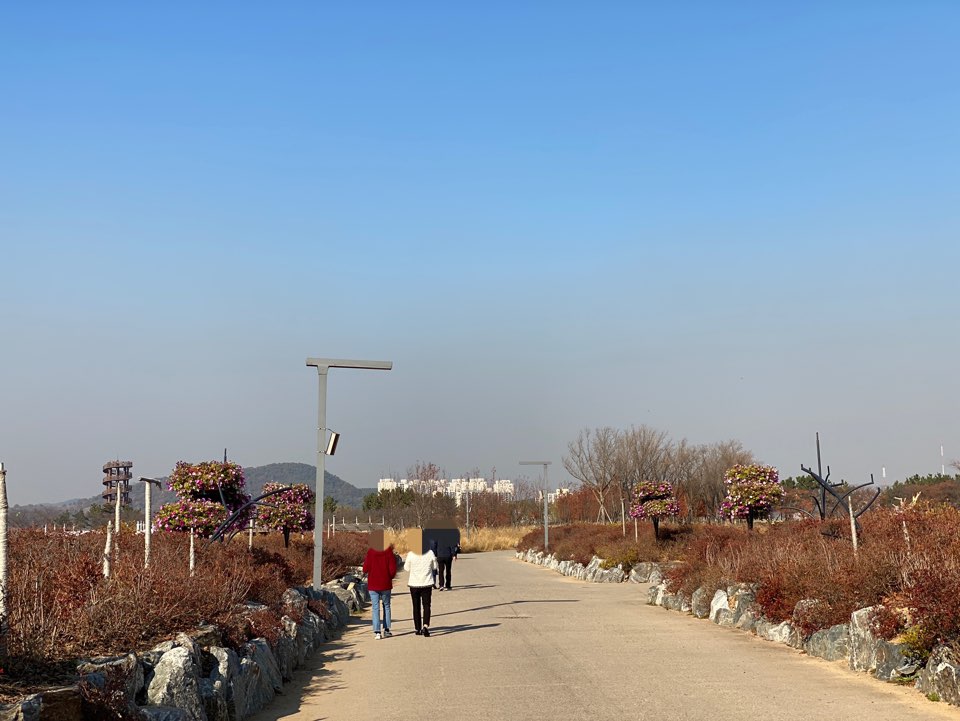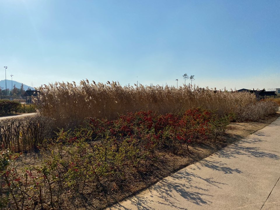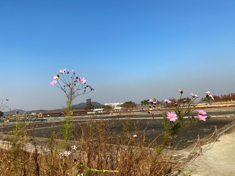 가을이라 사실 꽃은 거의 없는 상태였지만, 그래도 작은 코스모스들이 모여있었습니다. 여전히 풍경은 아름다웠습니다. 구름 한 점 없는 하늘과 푸르지는 않지만 차분한 억새들이 많았습니다.