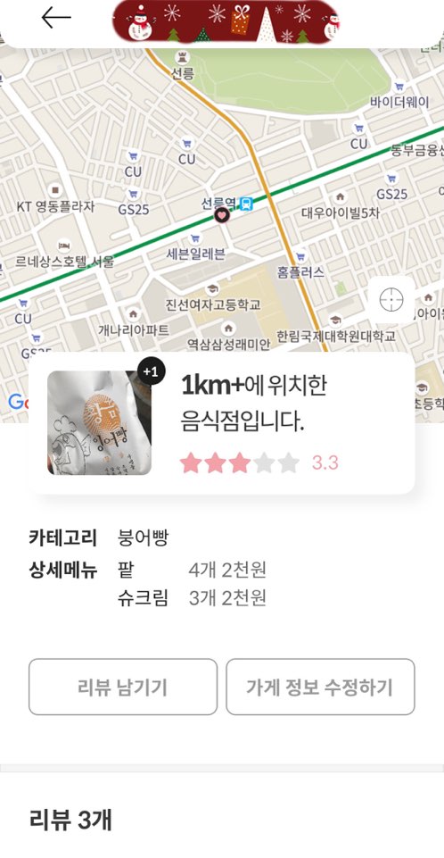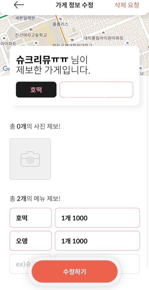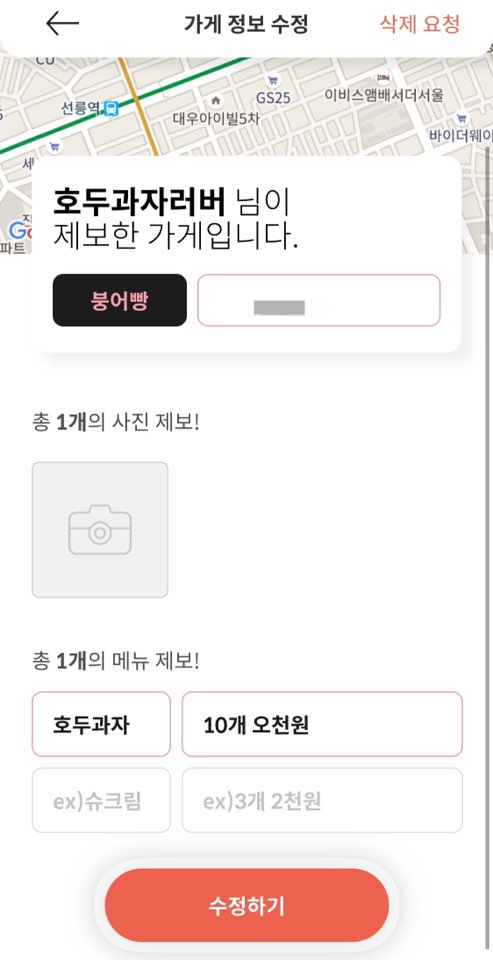 보시면 어플에 가게 제보를 할 수도 있고요. 다른 사람이 등록한 가게 정보를 수정할 수도 있습니다.