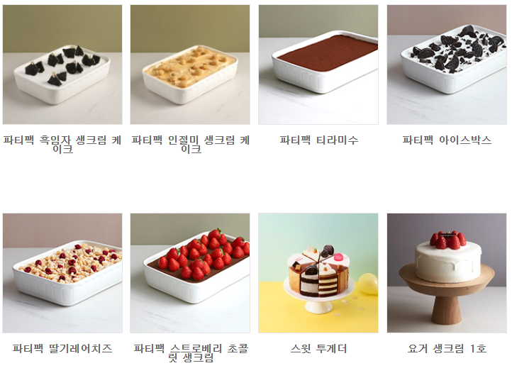 그리고 매장에서 먹을 수 있는 조각 케이크도 파티팩으로 주문 예약을 할 수 있게 되어있습니다. 티라미수나 아이스박스도 너무 맛있죠~