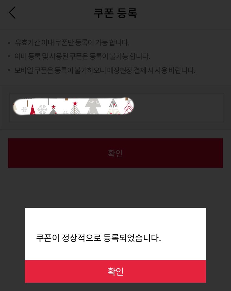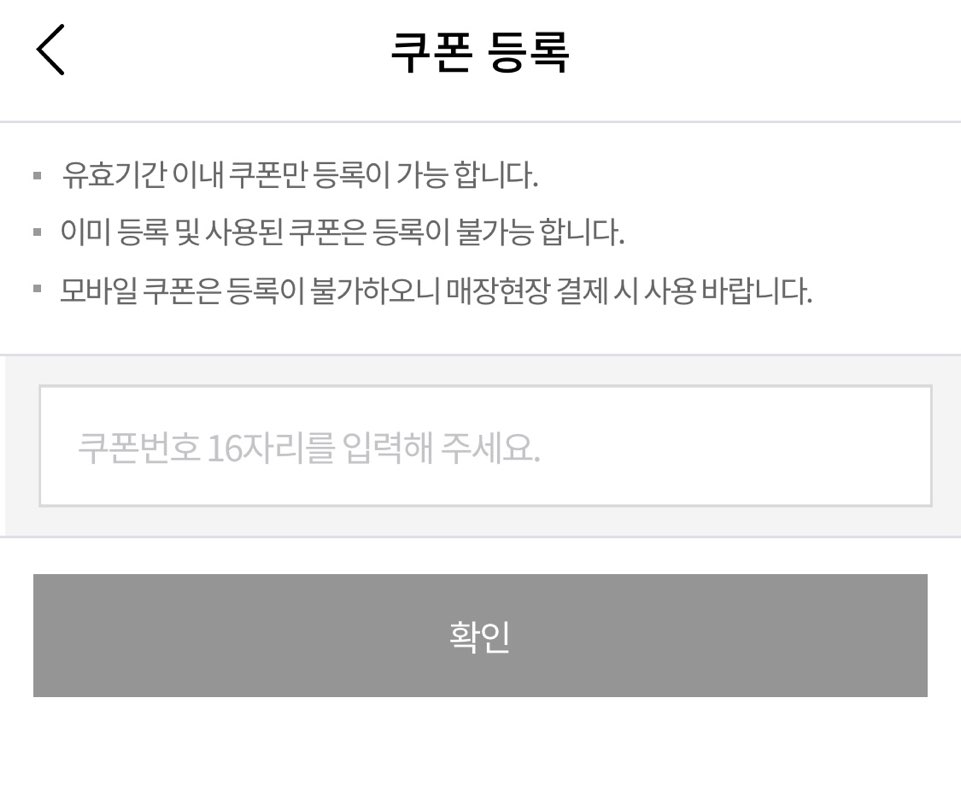 (쿠폰 사용 안내 :: 유효기간 이내 쿠폰만 등록 가능하다고 합니다. 또한, 이미 등록 및 사용된 쿠폰은 등록이 불가능하다고 합니다. 모바일 쿠폰은 등록이 불가능하니 매장현장 결제시 사용하면 된다고 합니다. 저는 쿠폰 사용기간이 2021.1.29(금)까지 라고 쓰여있네요. 다른분들은 언제까지로 써있으실까요? 사용기간은 다소 짧아요.)