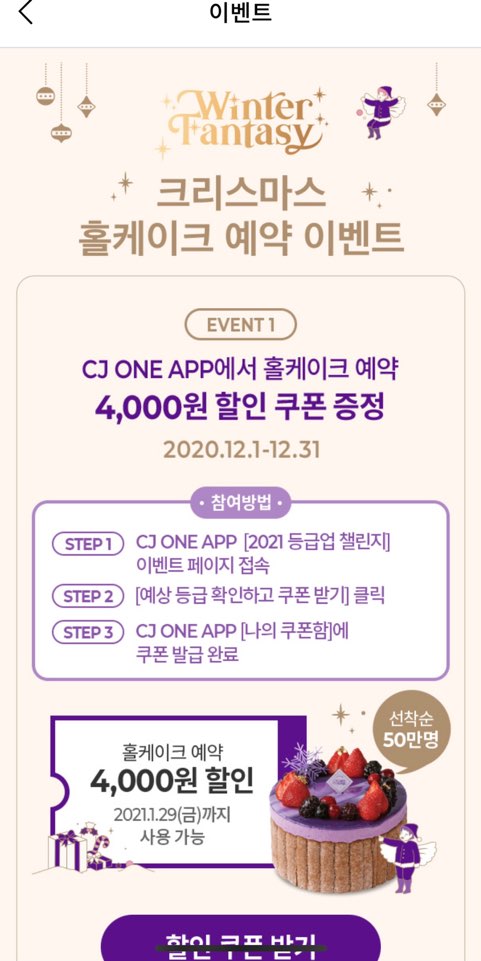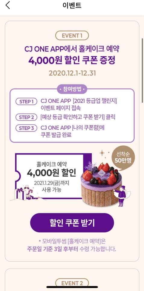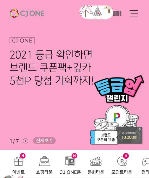 (1) CJ ONE 앱을 깔고(로그인 필요) 2021 등급업 챌린지 이벤트 페이지에 접속한다.