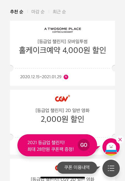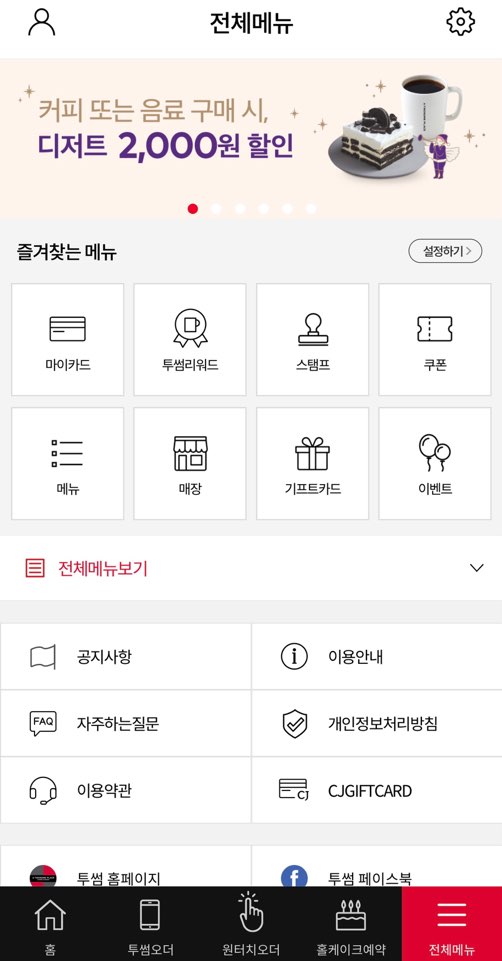 :: CJ ONE 앱깔고 등급을 확인하면 투썸플레이스 4,000원 할인쿠폰을 받을 수 있습니다.