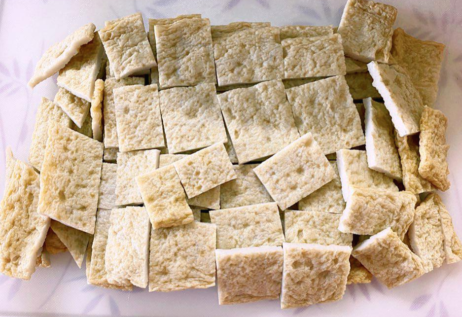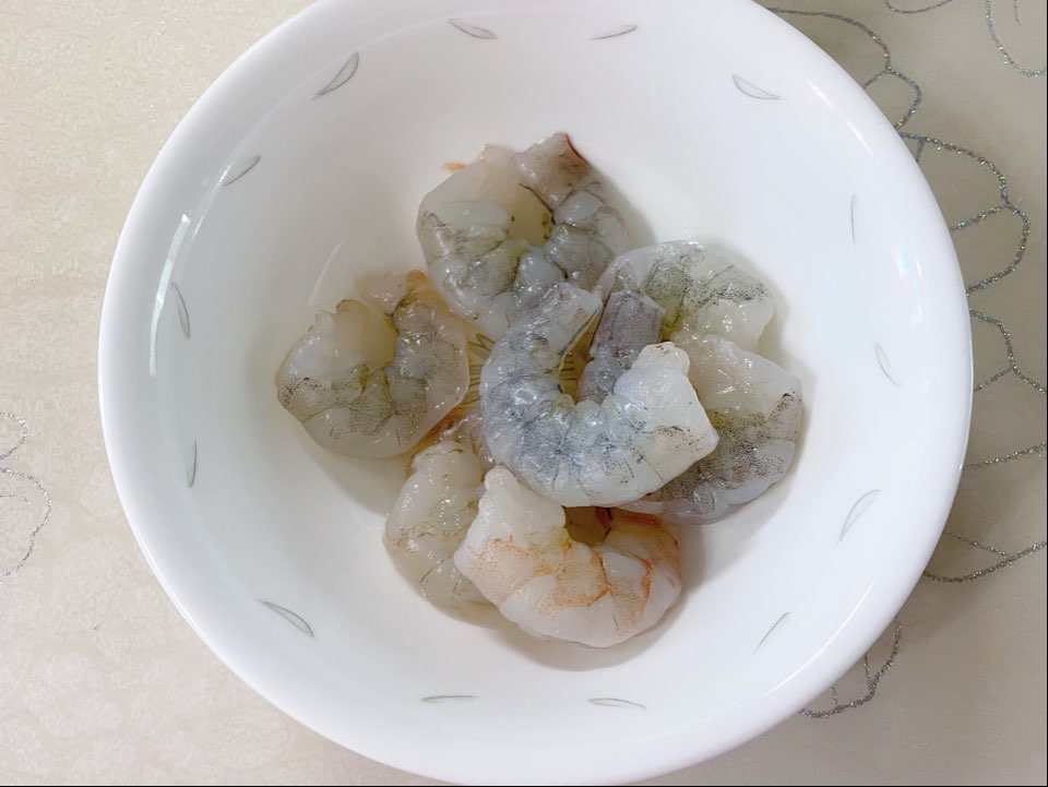 1. 떡을 물에 불립니다. 떡볶이 떡을 먹기 좋게 반으로 썰어줍니다. 어묵도 함께 썰었습니다. 떡은 물에 한 번 씻은 후 끓는 물에 살짝 데쳐줍니다. 떡이 말랑해졌을 때 사용했습니다. 그리고 남아있는 냉동새우가 있어서 새우도 물에 해동시켜주었습니다.