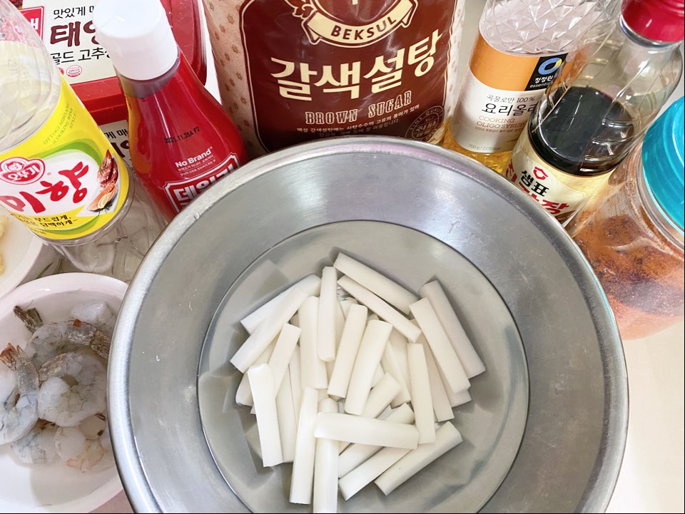 1. 떡볶이 떡, 그 외 기호에 맞는 재료(+어묵, 새우, 소시지 등등)