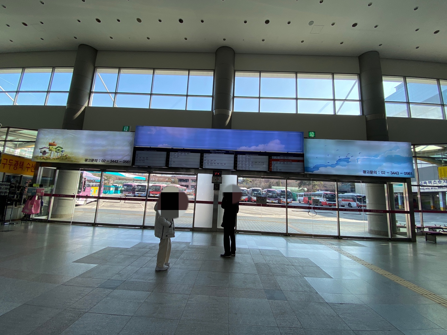 코로나 확산 때문에 창구에서 표 발행하는 사람은 많지 않은 것 같고요. 버스 어플로 티켓팅을 할 수 있습니다. 버스 어플로 예매를 하실 수 있어요. 티켓팅하는 방법은 쉬워요!
