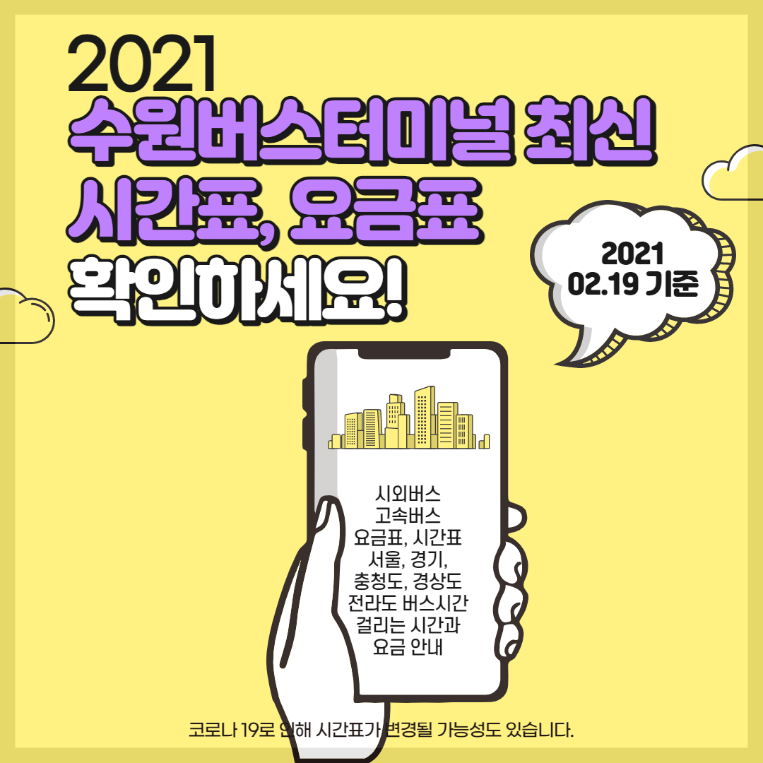 수원버스터미널을 이용하실 계획이 있으시면 이 글을 보시고 시간표와 요금표를 참고하시면 되겠습니다.